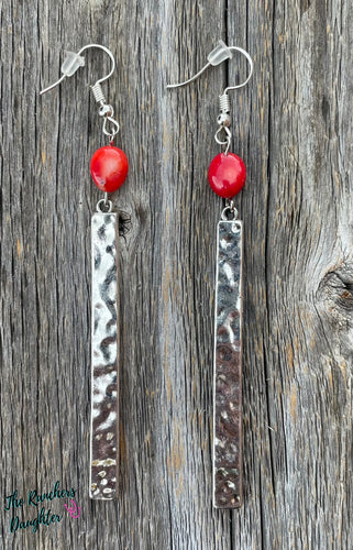 • Rectangle Red Coral Earrings