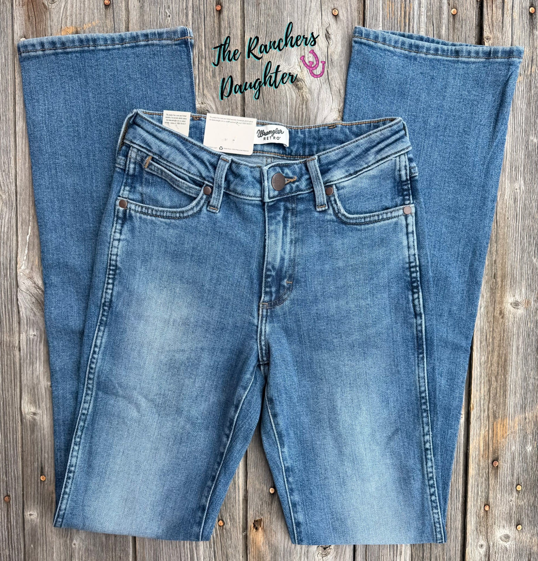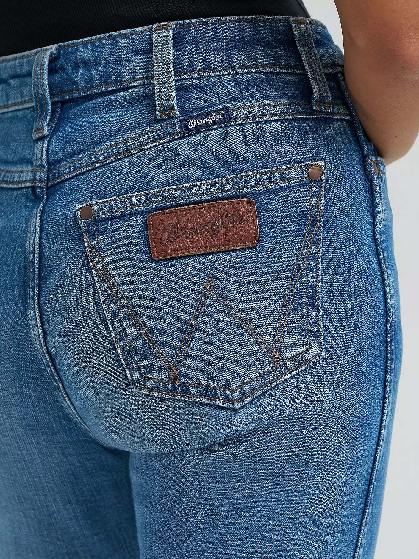 Trends may come and go, but the bootcut is forever. Our Women’s Wrangler Retro® Bailey High Rise Bootcut Jean sets the bar high with a waist-nipping silhouette, a close fit through the thigh, and a slightly flared 17” leg opening that goes perfectly over boots. It’s crafted from cotton with just a subtle amount of stretch for comfort. Plus, the signature five-pocket styling, “W” stitching, and rope logo patch deliver the Western authenticity you want.