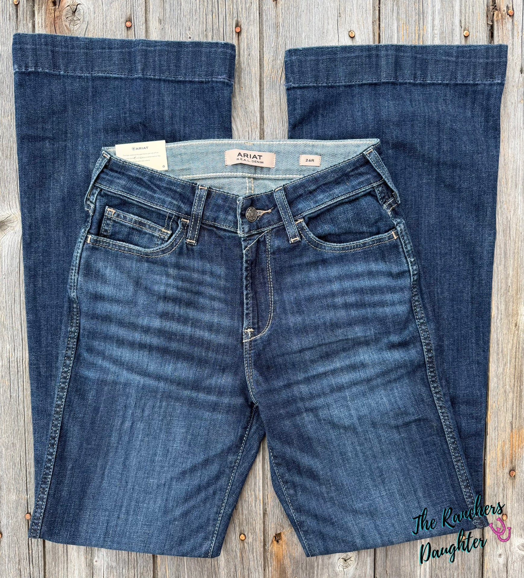 A dark wash that keeps dirt out of sight and clean lines create a polished fit that flatters. Performance-ready and trend-right, these jeans work beautifully in the arena and also look amazing on a night out.