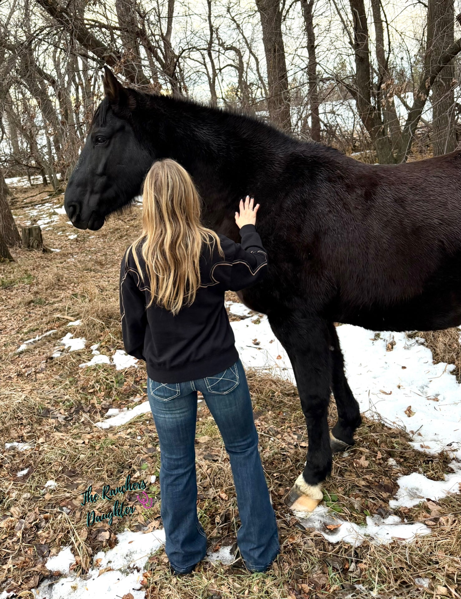 The Ranchers Daughter Exclusive Ariat Arie Slim Trousers have been years in the making. These trousers were designed by me exclusively and are ONLY available here at The Ranchers Daughter and are named after my beloved black mare Arie 💞🤩