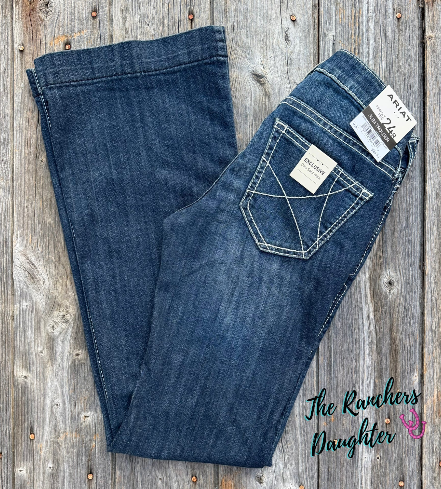 The Arie Slim Trousers feature the simple but flattering Ella pocket in white stitching on a perfect blue denim wash. From working on the ranch, riding in the saddle or heading to town these trousers will be your go to and the comfiest pair of trousers you will own.