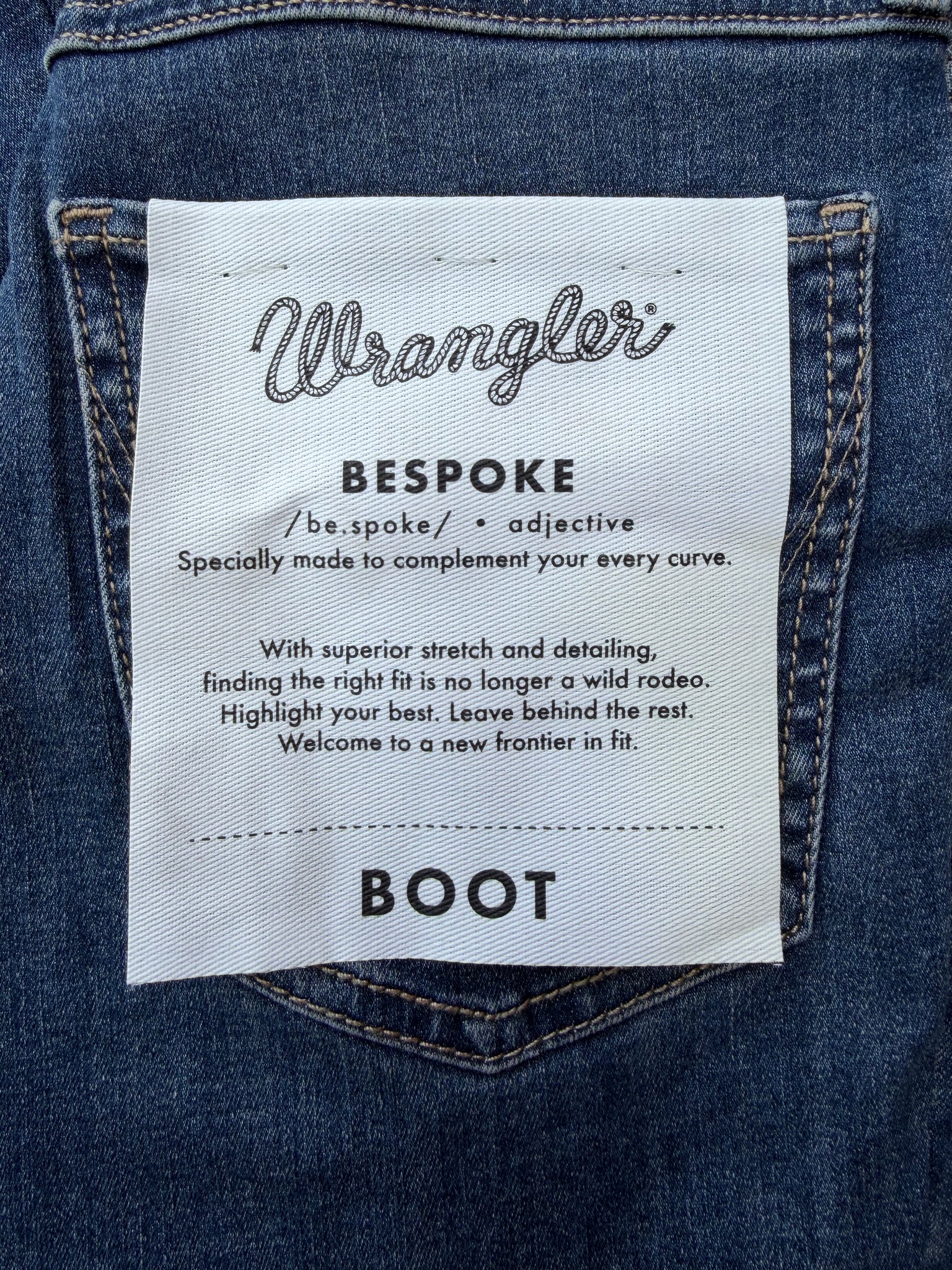 Welcome to a whole new frontier in fit. The Women’s Wrangler® Bespoke High-Rise Bootcut Jean gives your curves the spotlight they deserve. It comes with a contoured waistband that eliminates gapping and a silhouette that celebrates your shape from every angle. These bootcut jeans for women are crafted from a comfortable cotton blend with stretch for added flexibility and shape retention. They also feature all the iconic details: the five-pocket styling, the “W” embroidery, a logo patch