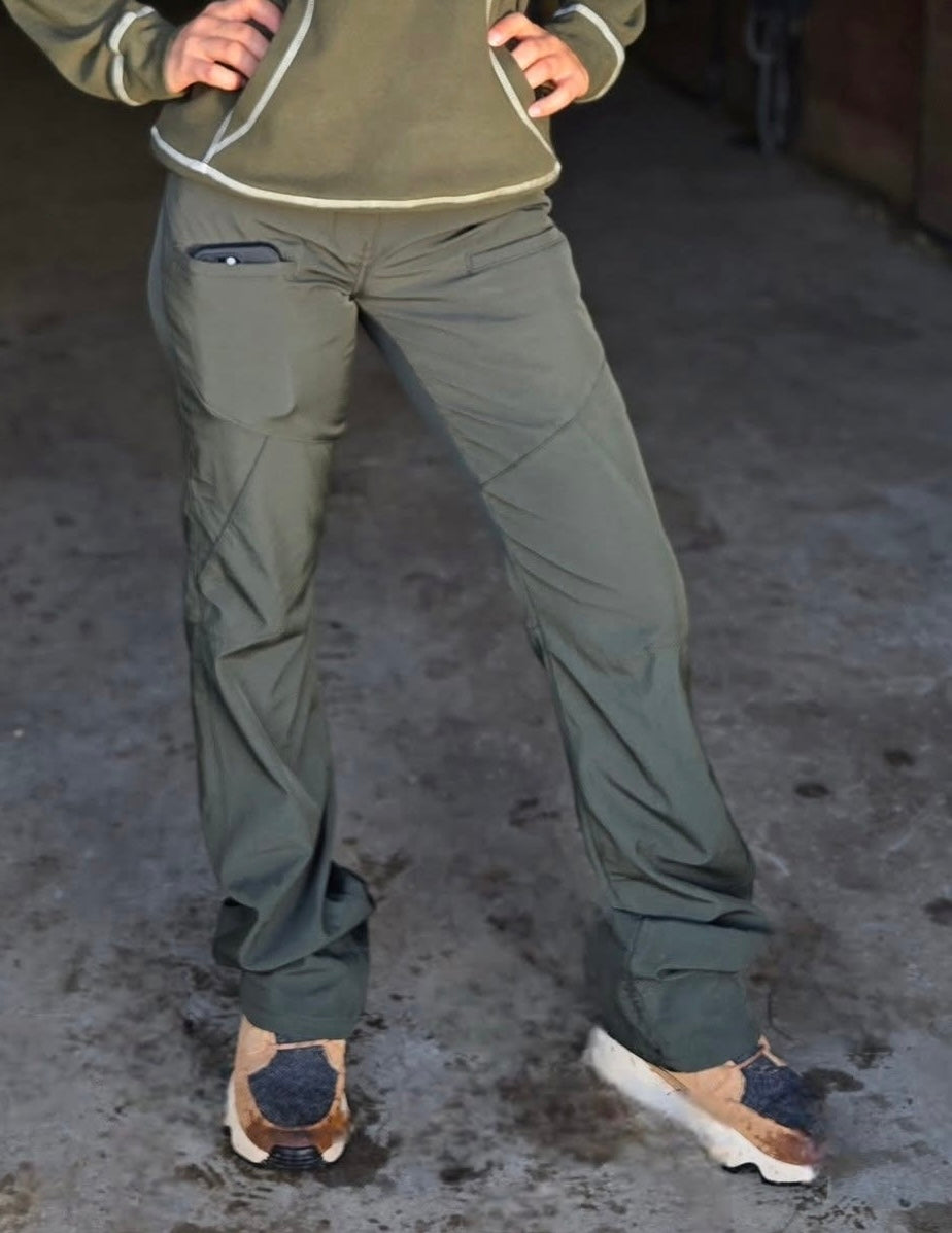 New Olive Green WHPH Microfiber fleece-lined style that has a zipper and a button. (This is not the pull-on style) They are Natural Waist, low stretch, fit absolutely perfectly and feel amazing. These run true to size. They entail ultra-amazing, thin, microfiber lined stretch that everyone loves. They are wind, water, and cold resistant making these the perfect Fall & Winter pants for everything you do outside. Bottom hem is marked to cut your length of choice as they do not fray when you cut them. 2 cellphone pockets for your convenience. These pants have proven themselves as a must have staple in everyone’s closet!!! Get yours today and see why so many have two or three pairs!!!